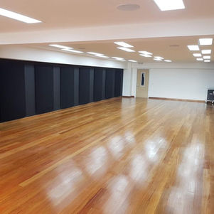 Sala de danza: en piso de madera natural flotado, con sistema acústicos, espejos piso-techo y barra, sistema de sonido envolvente, iluminación en led.