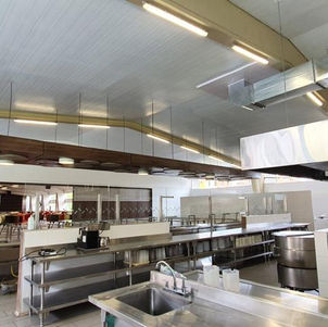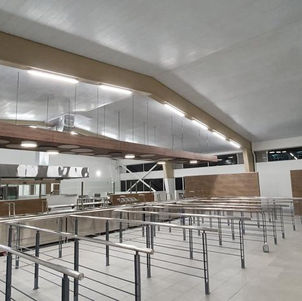 Pisos en porcelanato según diseño en salón y cocina, enchape cerámico, ventanería en aluminio y vidrio laminado, cielo raso en drywall, pergolas con sistema acústico, muros tarima en madera laminada, acabado en estuco y pintura, nubes acústicas e iluminación led, sistema de iluminación inteligente en tarima; cocina con muebles en acero inoxibable, campana industrial, cuartos fríos y de congelación; mobiliario de mesas de diseño ajustado a niñas, mesas y sillas; sistema de sonido para auditorio.