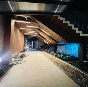 Estructura metalica modular, anclado sobre minipilotes, cubierta metálica, elementos pergolado resistente a la intemperie (externa), pisos en porcelanato, ventanas en aluminio y vidrio laminado, iluminación led.